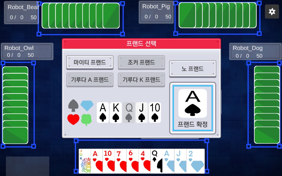 - 주공이 특정 카드를 지정하면, 그 카드를 가진 사람이 프렌드가 된다
